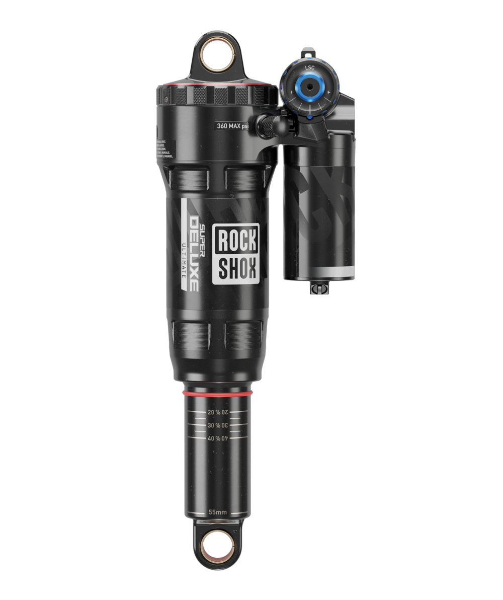 Give your all-day trail bike the firepower it needs for rugged terrain, plus the efficiency to climb back up for more. Super Deluxe Ultimate is a race-proven, award-winning rear shock that keeps getting better. The latest generation has decreased High-Speed Compression damping to devour the downhills. The proven RC2T damper contains an arsenal of suspension tuning settings for any rider or trail. Independently adjust High and Low Speed Compression or reach for the Threshold lever if you need pedaling efficiency. Pure all-mountain performance starts and finishes with Super Deluxe.