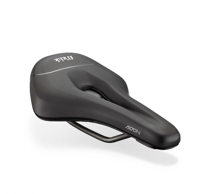 As part of the new Fizik range of short-nosed saddles, the Aidon is specifically designed for use with full-suspension E-MTBs. The shorter shape puts riders in a more planted position, making for greater stability, confidence and control when riding heavier pedal-assisted bikes.