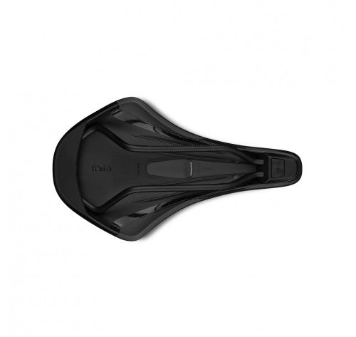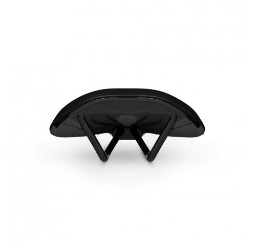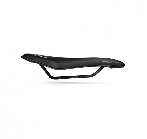 A gravel specific saddle with a short nose and a combination of a ridecompliant carbon fiber reinforced nylon shell and an S-Alloy rail.